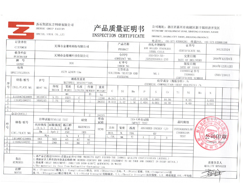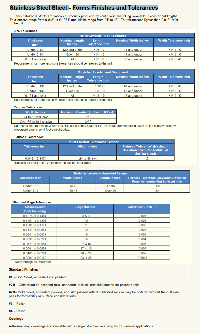 Different thicknesses of steel plates have different tolerances. We strictly abide by the stainless steel plate tolerance implementation standards stipulated by the Chinese government, GB4237-2015, GB4238-2015, GB3280-2015, etc.